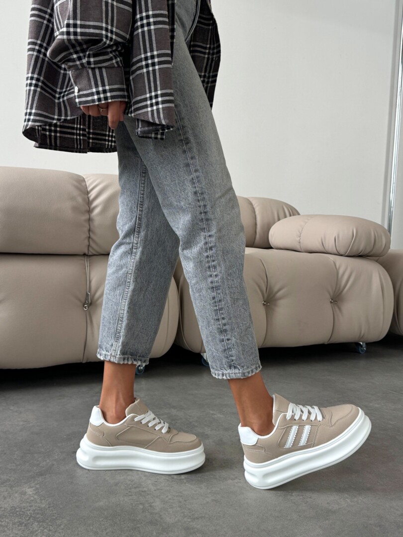 Кеди на високій платформі бежеві з білими смужками