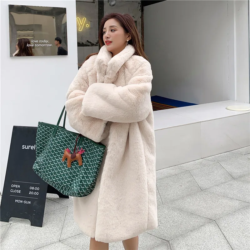 Женское зимнее модное длинное пальто из искусственного меха, однотонное
